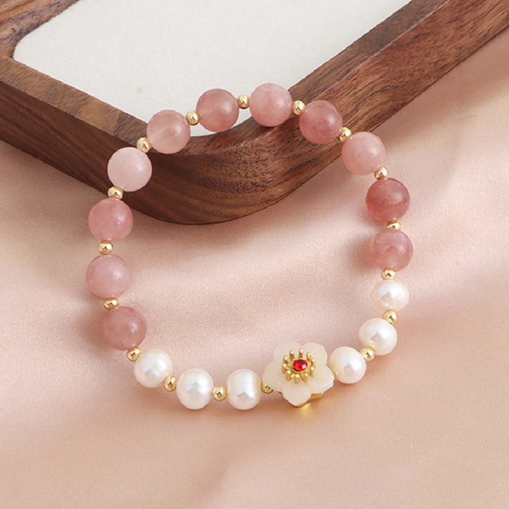 [開運 金運 仕事運 ] 天然石 ブレスレット 12MM ストロベリークォーツ 天然石ブレスレットパワース トーンブレスレッ スアクセサリー WRTA-BR-588