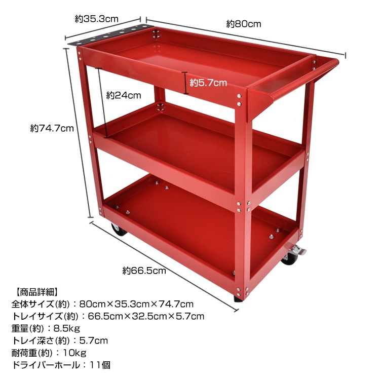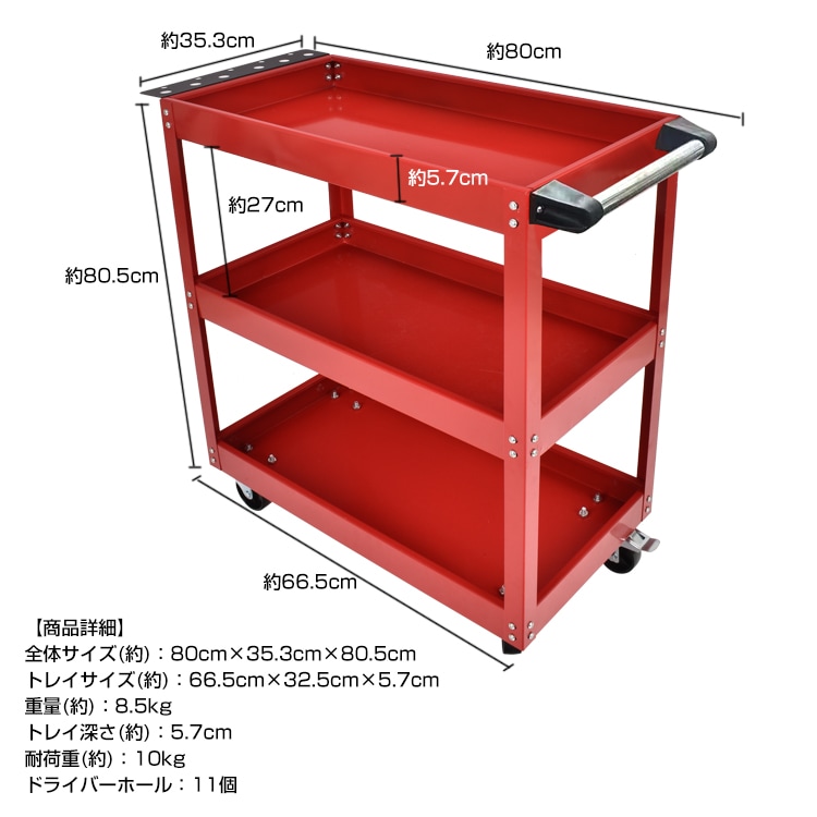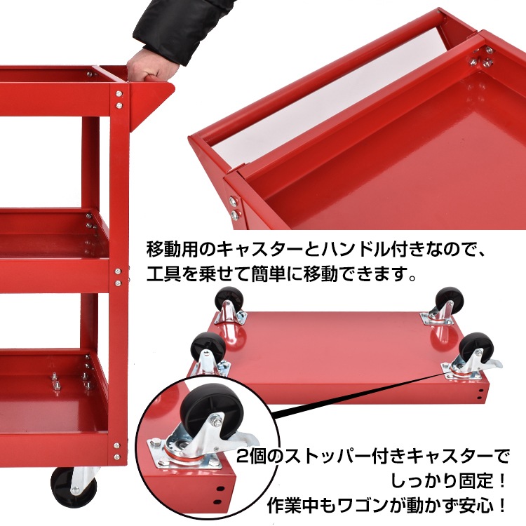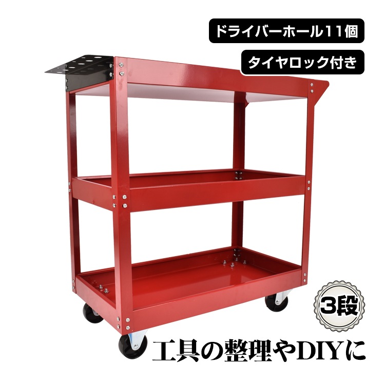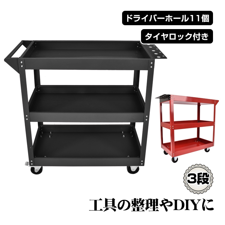 ツールワゴン ツールカート 3段 工具台車 工具カート 工具収納 工具整理 ストッパー付きキャスター ドライバーホール付き ny607