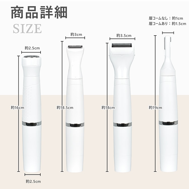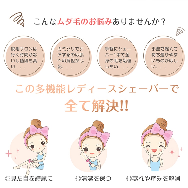 ■付属の4つのシェーバーは肌に触れず、優しく毛を処理します!