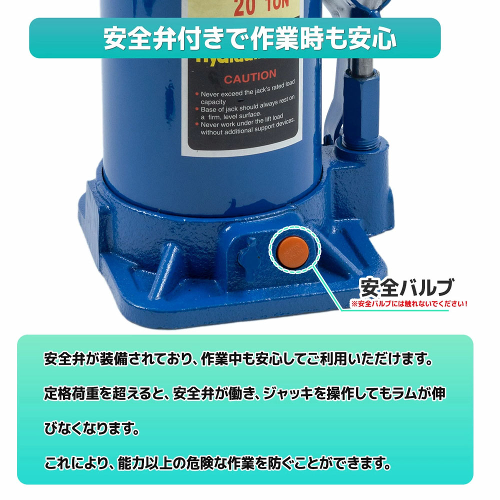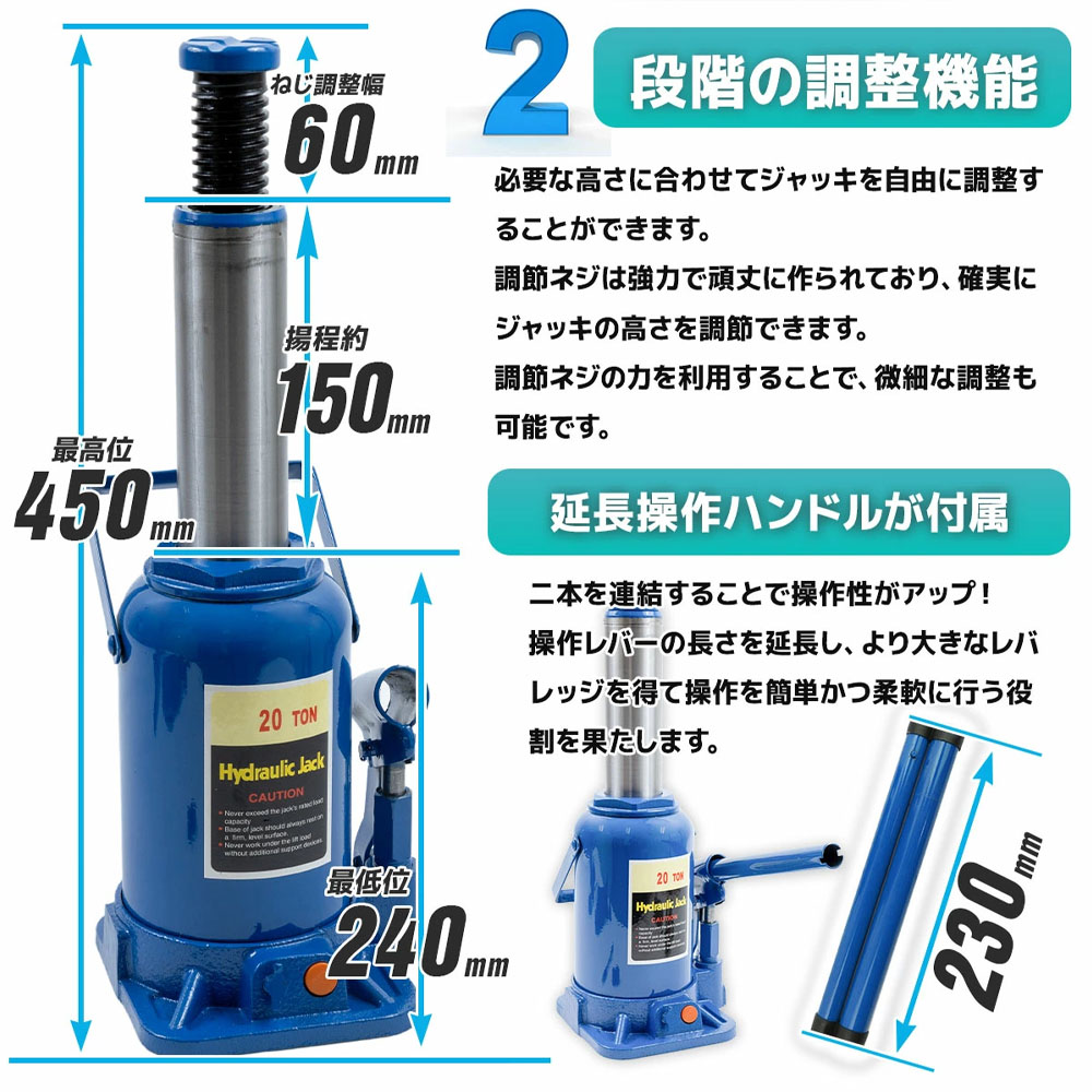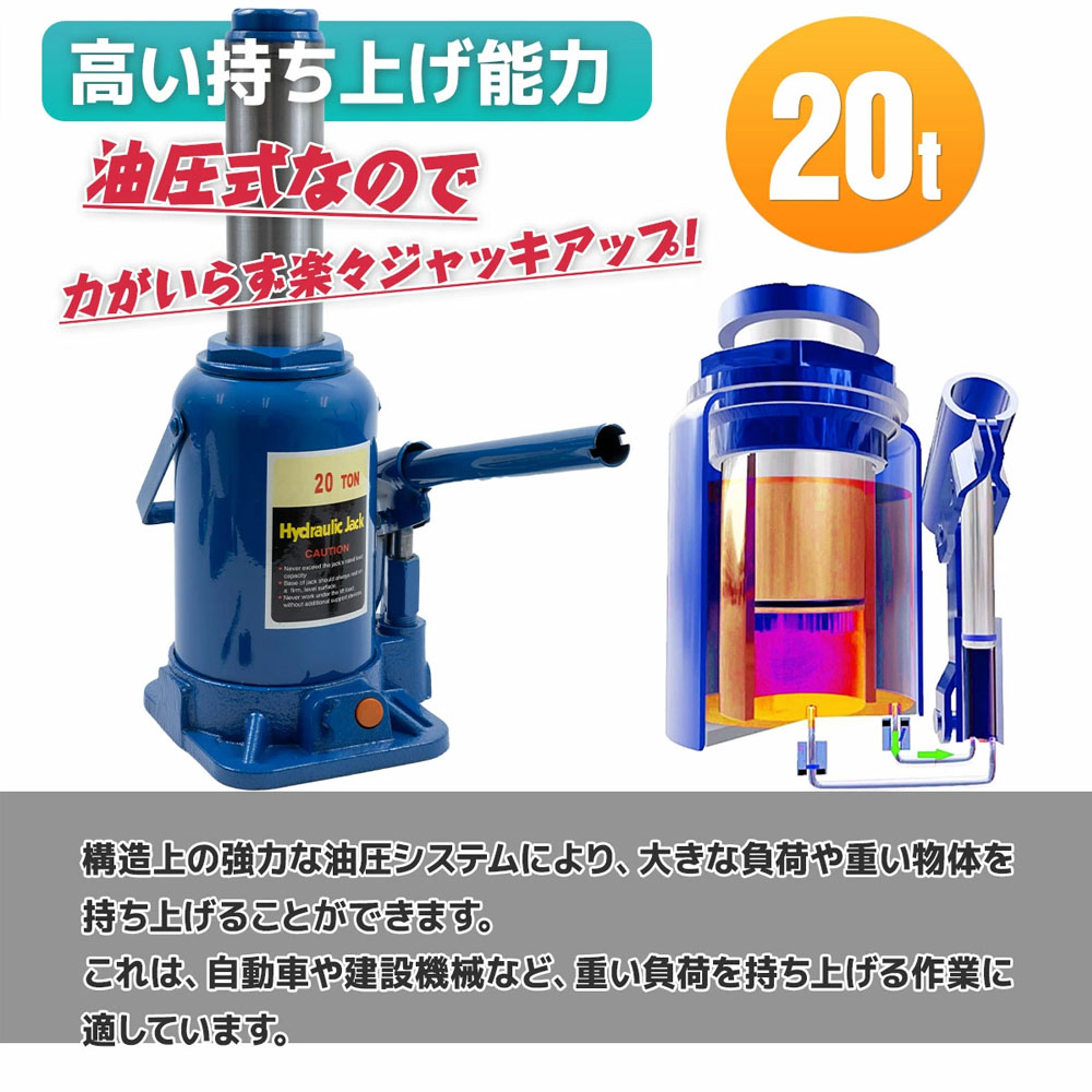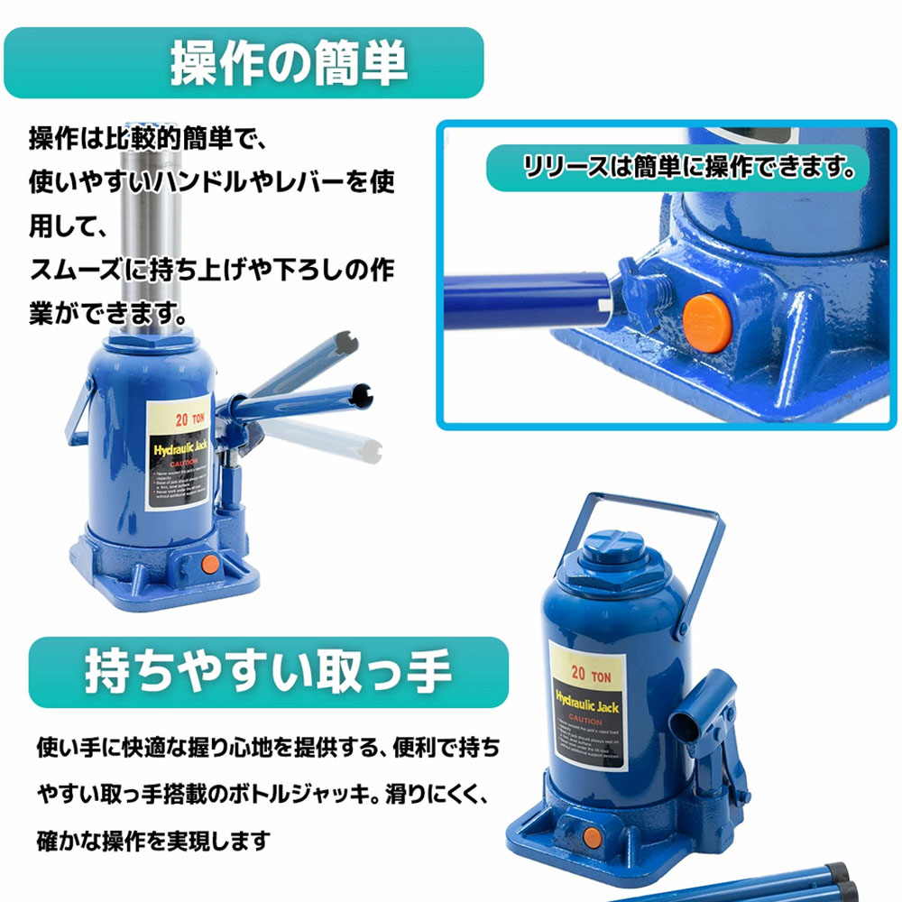 油圧式ボトルジャッキ 20t カラー選択 [赤・青] /本体11kg 安全バルブ付き 業務用途(整備工場・建設現場など)に向いている  タイヤ・ホイール交換 アンダーピニング等 業務用/高頻度/重整備作業向き   L0547750油圧式ボトルジャッキ 20t カラー選択 [赤・青] /本体11kg 安全バルブ付き 業務用途(整備工場・建設現場など)に向いている  タイヤ・ホイール交換 アンダーピニング等 業務用/高頻度/重整備作業向き L0547750