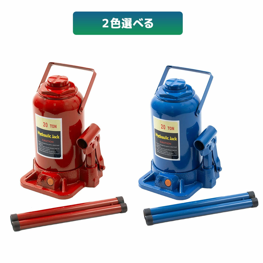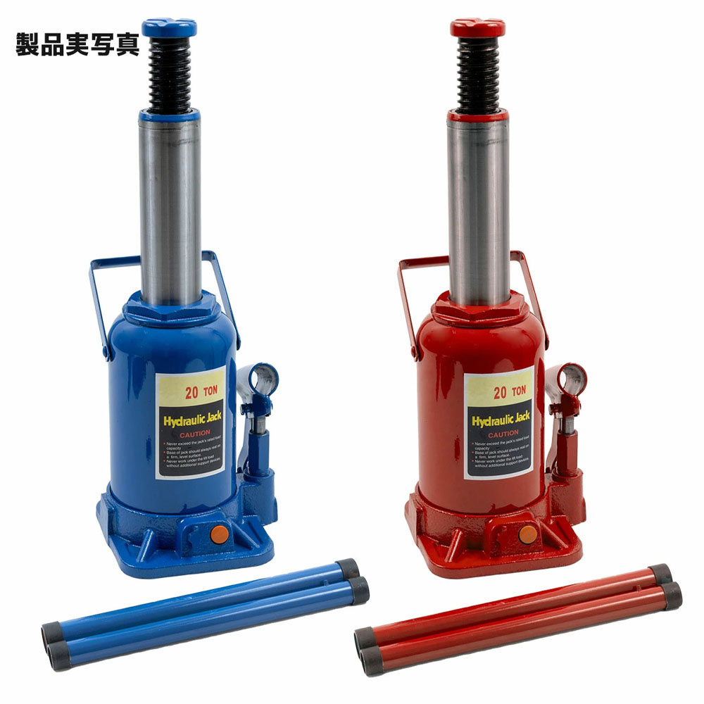 油圧式ボトルジャッキ 20t カラー選択 [赤・青] /本体11kg 安全バルブ付き 業務用途(整備工場・建設現場など)に向いている  タイヤ・ホイール交換 アンダーピニング等 業務用/高頻度/重整備作業向き L0547750