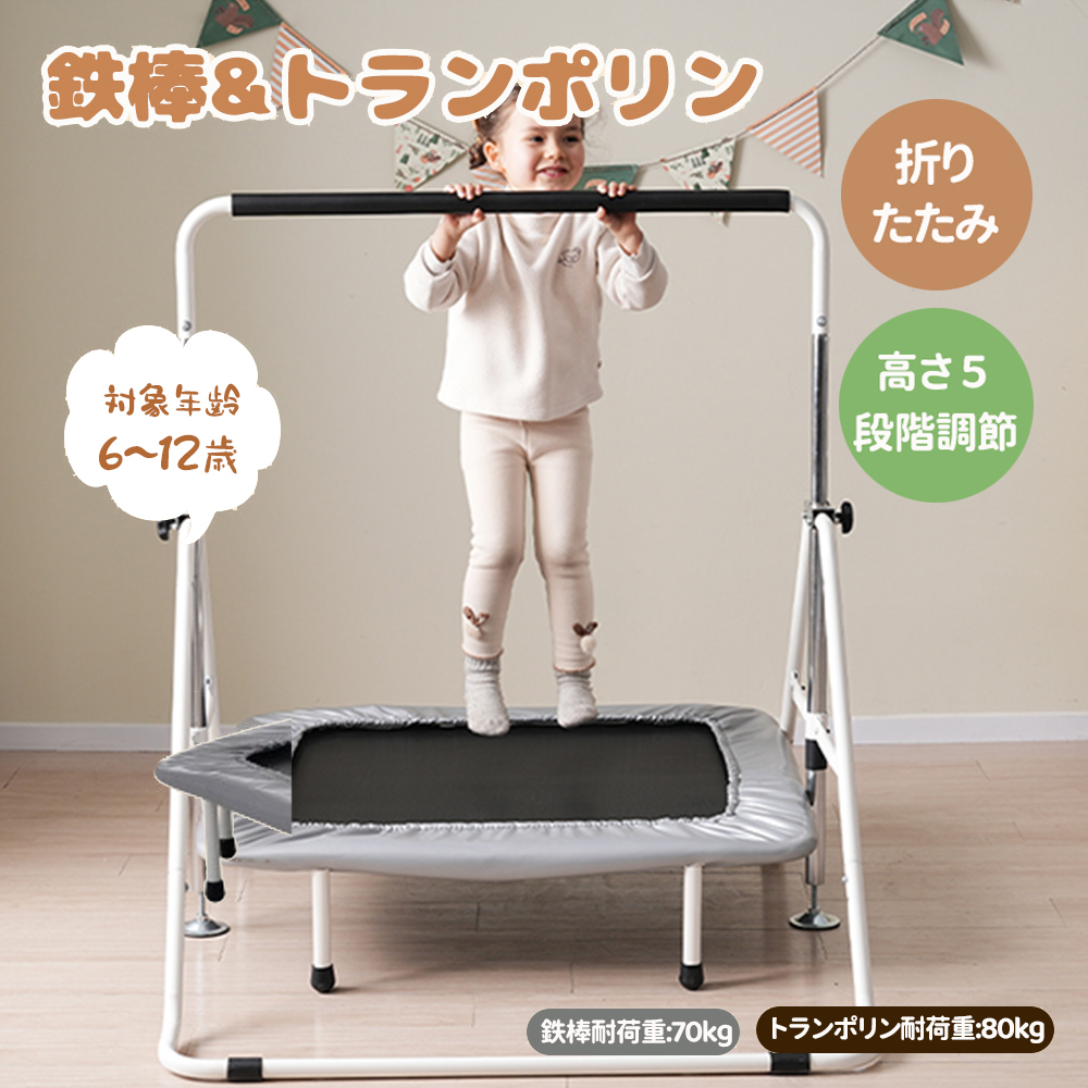 【室内使用&折りたたみ式】天候・時間に関わらず、いつでも鉄棒/トランポリンを練習できます。お家で運動でき、腹筋や腕の力がつくにはとても便利!使わないときには、簡単に折りたため、物干しになります。鉄棒とトランポリン重ねて組み合わせ可能、スペースを取らずに収納できる!横幅はわずか約40㎝とコンパクトに収納できます。