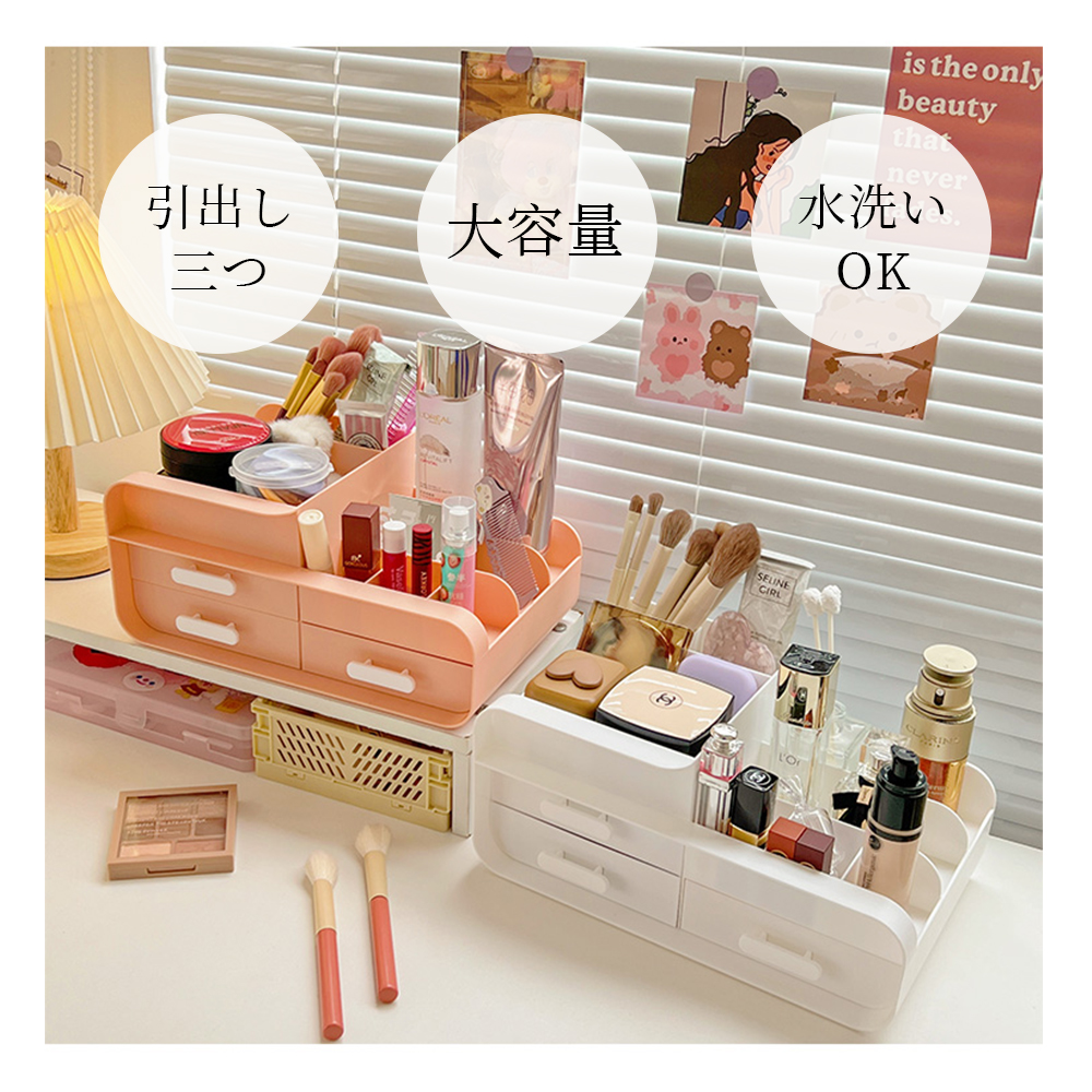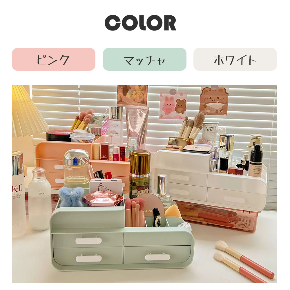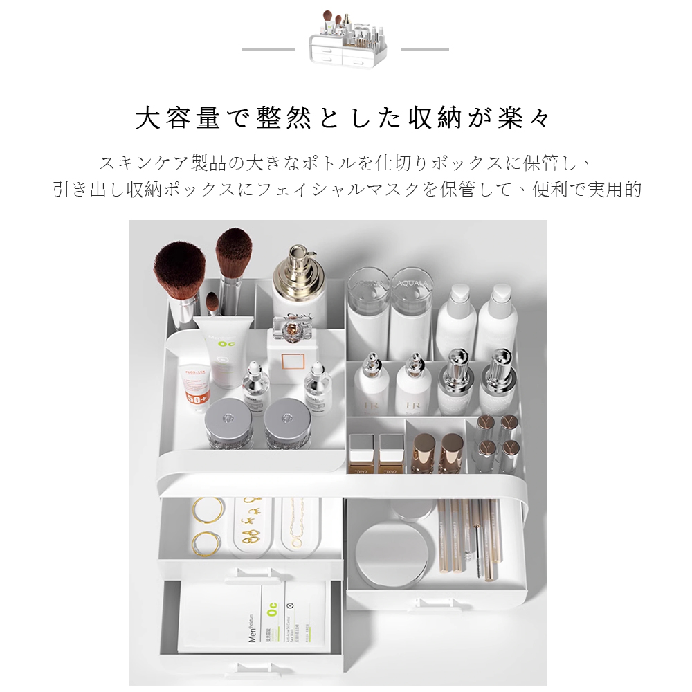 【大容量・収納力抜群】収納後の中身が一目瞭然、整理しやすくて忙しい朝もメイクグッズがサッと取り出しやすいから、メイクアップの時短が叶います。