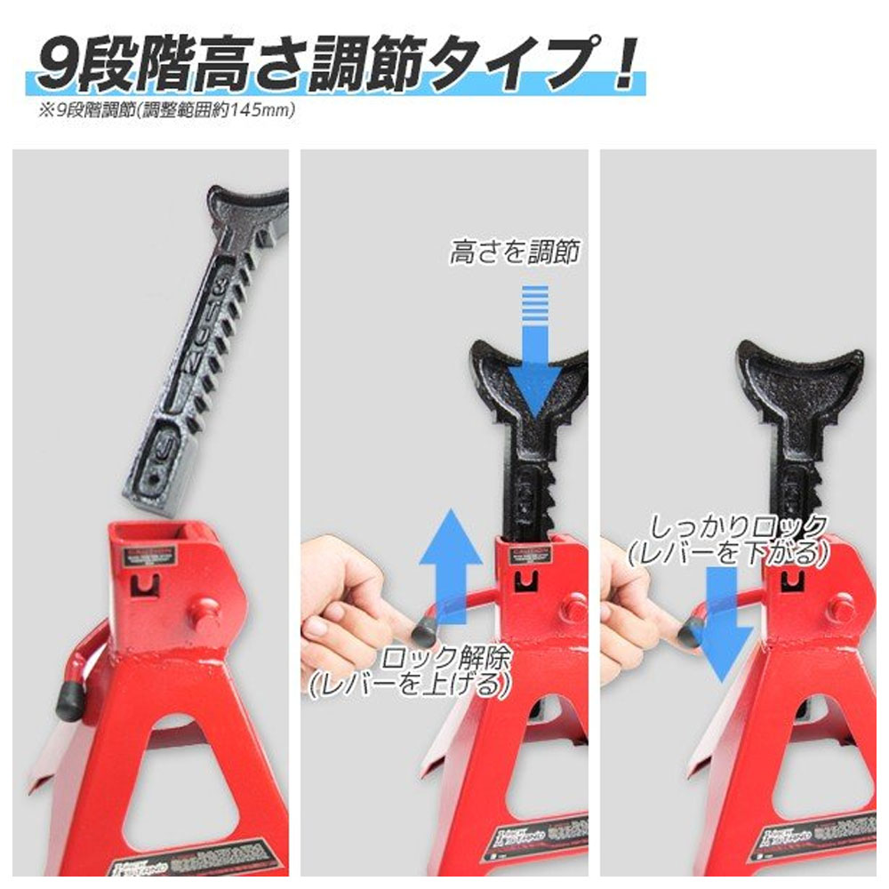 ジャッキスタンドA 2基セット 耐荷重3t / リジットラック 馬ジャッキ ジャッキアップ 整備 ラチェット式 2個セット ウマ 馬 ジャッキ スタンド ジャッキアップ 2基 車 タイヤ 交換 L0510570
