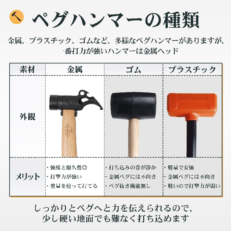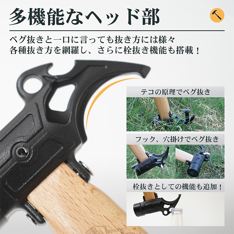 ■多機能ハンマーなので、様々なタイプのペグに対応