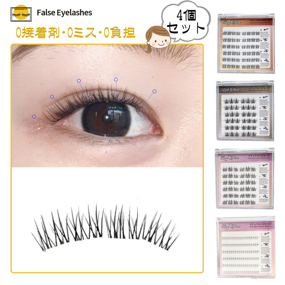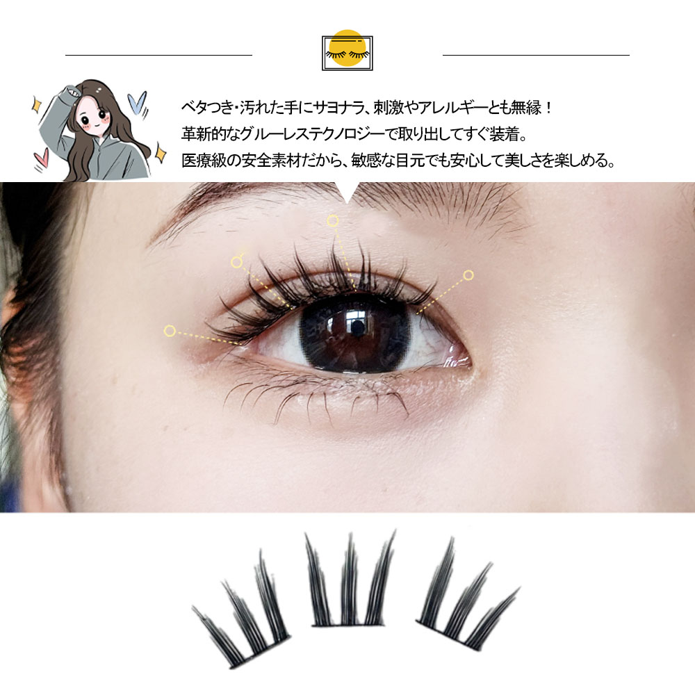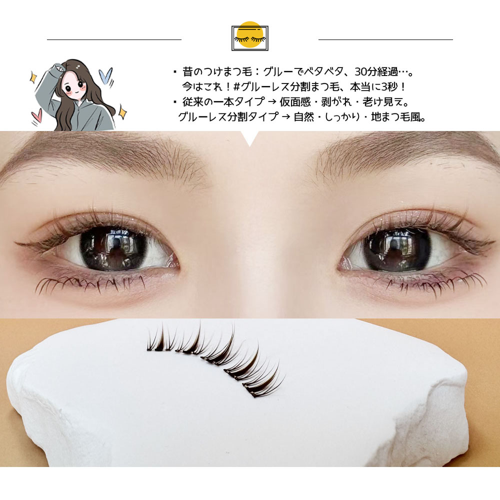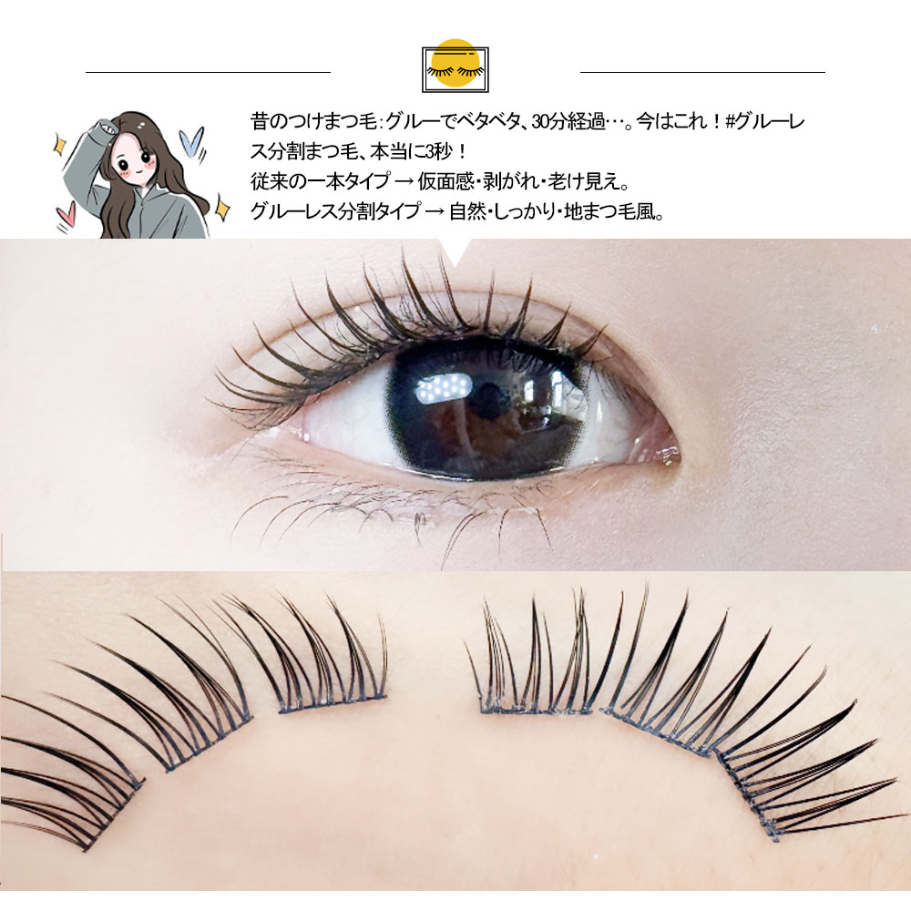 つけまつげ つけまつ毛 のり不要 分割タイプ ナチュラル 落ちにくい しっかり固定 軽量 快適 地まつ毛風 安全素材 グルーなし 接着剤不要 可愛い アイメーク 初心者 TANJM-GHE