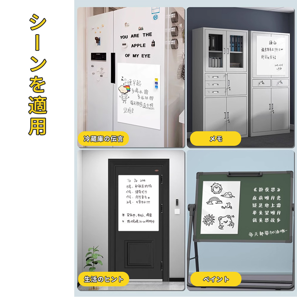 【防水、拭きやすい】 ボードの表面は防水性と防湿性があり、キッチンの水の周りで使用できます。文字を消去するときは、痕跡を残さずに湿ったタオルで拭いてください。