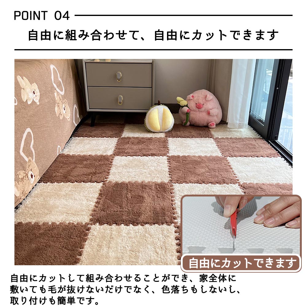 【柔らかいマット】厚手の絨毯型ジョイントマットです、手触りが柔軟で弾力性抜群、柔らかいタッチのラグマットです、転倒しても衝撃を和らげて。