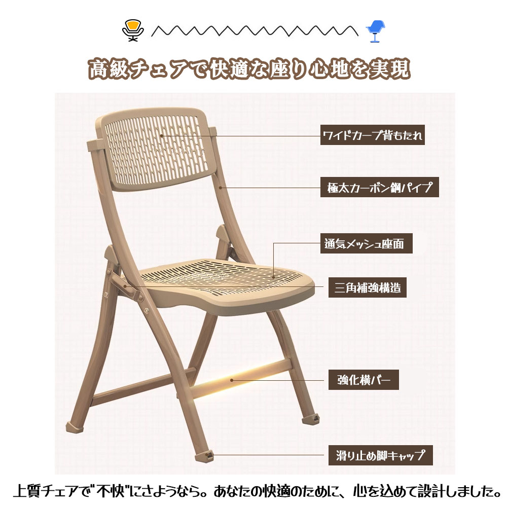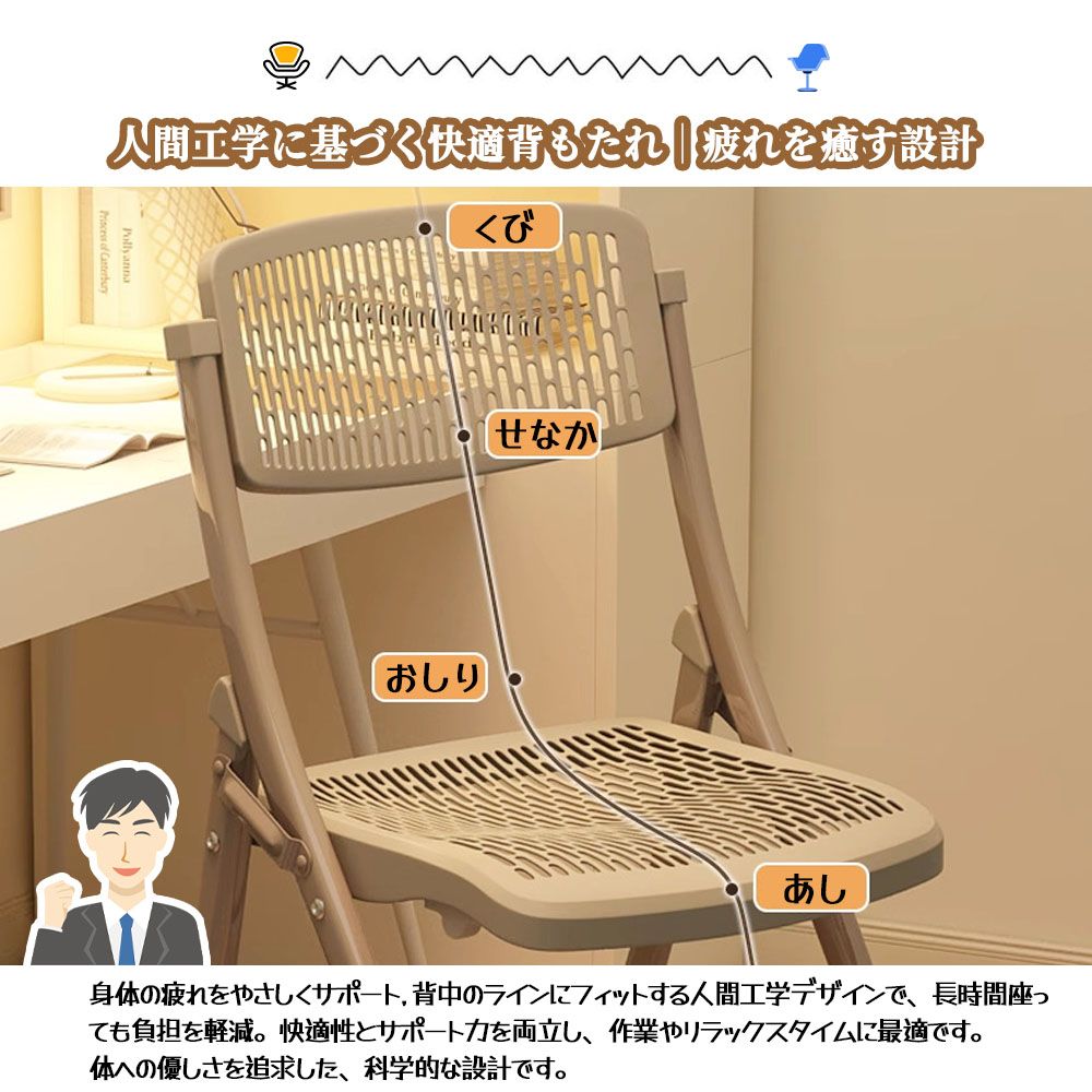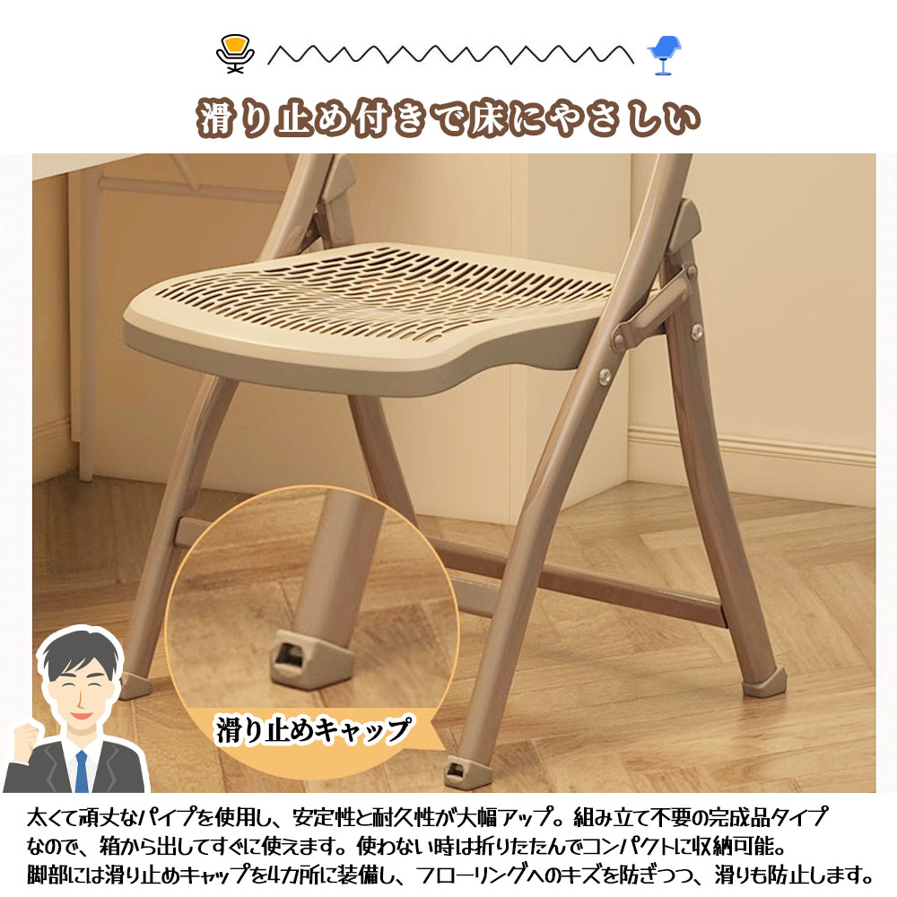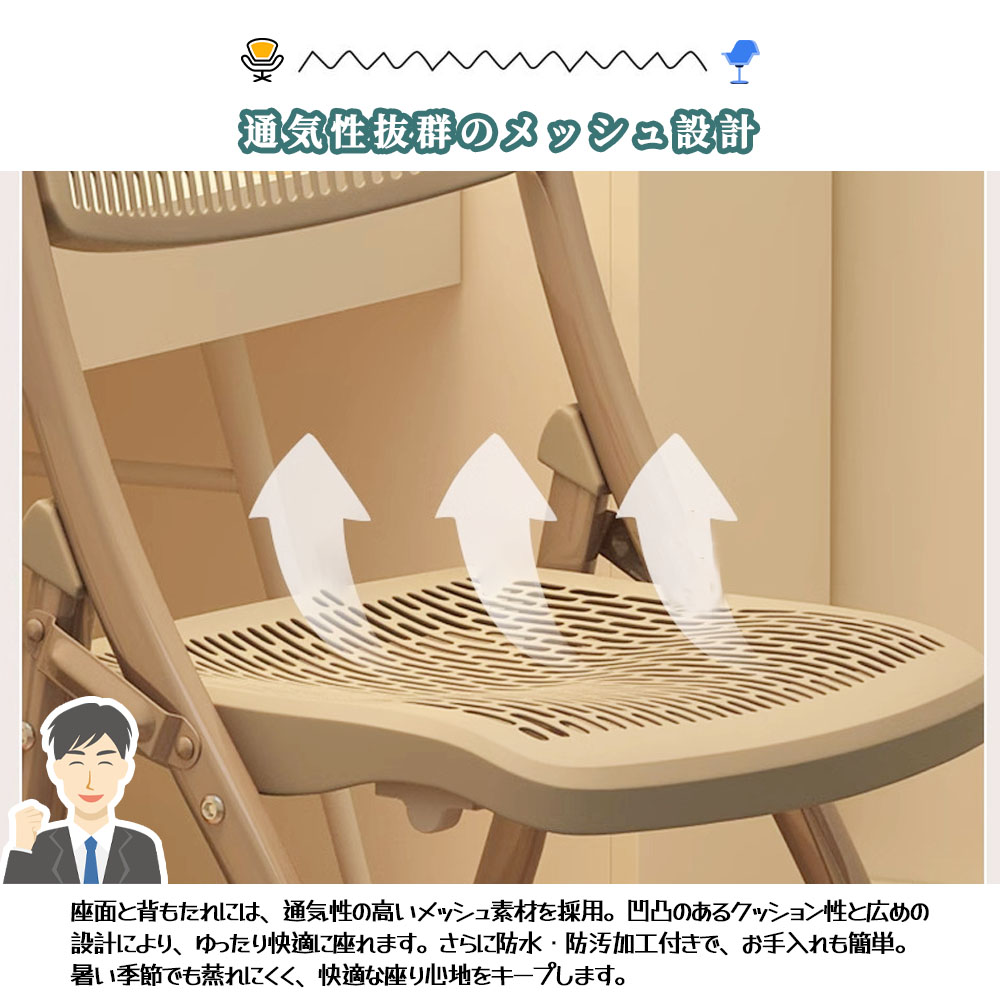折りたたみ椅子 折りたたみチェア 背もたれ 通気 防水 軽量 コンパクト 隙間収納可 滑り止め付き お手入れ簡単 組立不要 完成品 学校 事務所 家庭用 DB-03