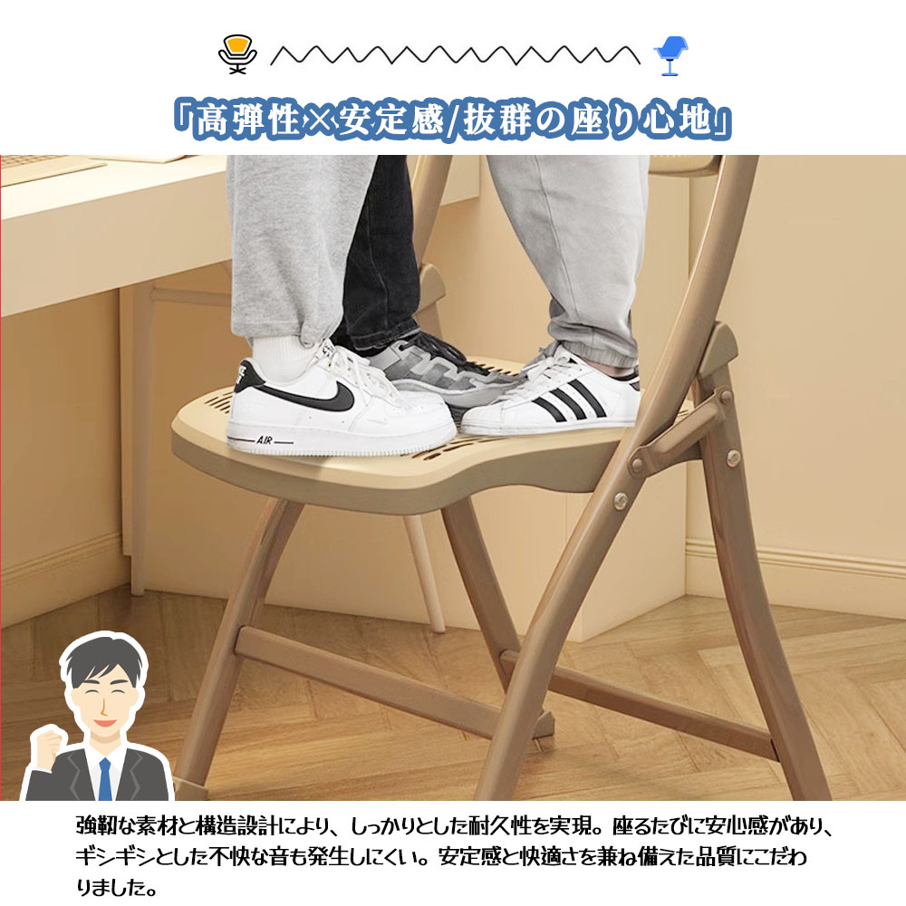 → 軽量折りたたみ設計:椅子は折りたたみ構造を採用しており、持ち運びや収納が簡単で、省スペースです。家庭やオフィス、アウトドアなど様々なシーンに適しています。