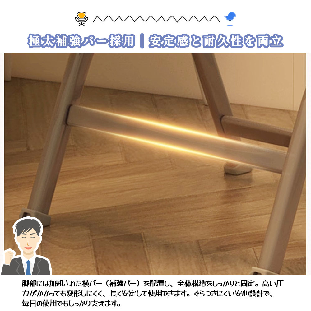 → 滑り止め脚カバー:底部には滑り止めの脚カバーを装着し、使用時の安全性を確保し、滑りにくく床を傷つけにくいです。