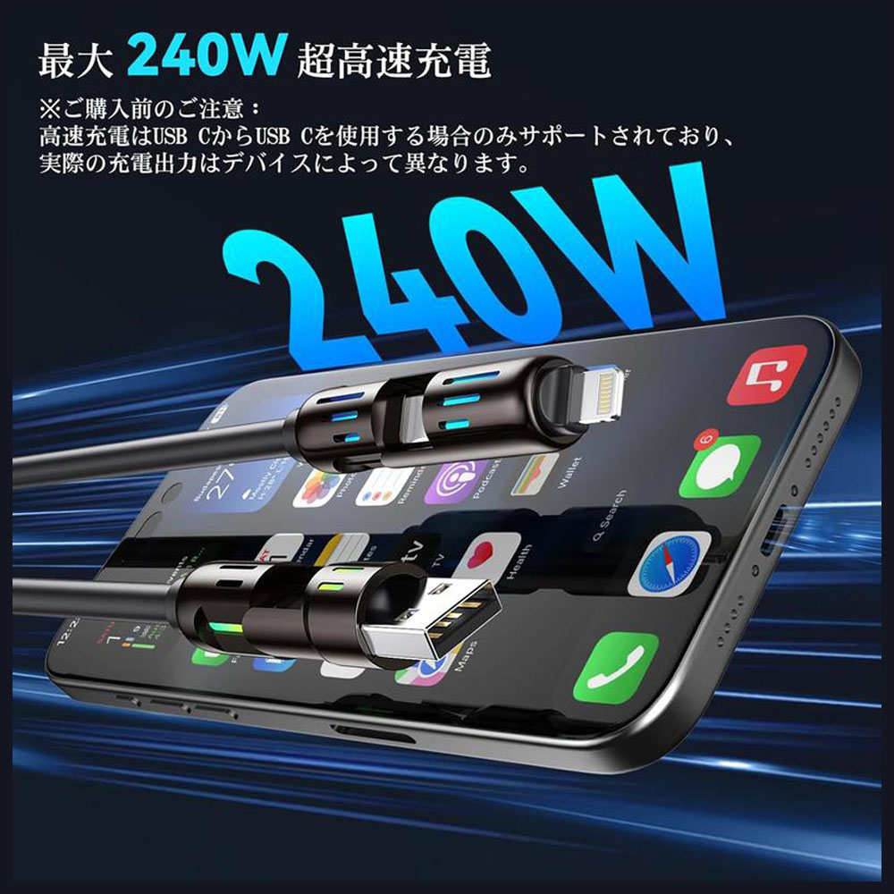 充電ケーブル マルチ充電ケーブル 充電コード ライトニング充電コード 1.2m 4in1 最大 240W 高速充電 Lighting Type-C 過熱防止 スマホ ノートパソコン 旅行 出張 SJX