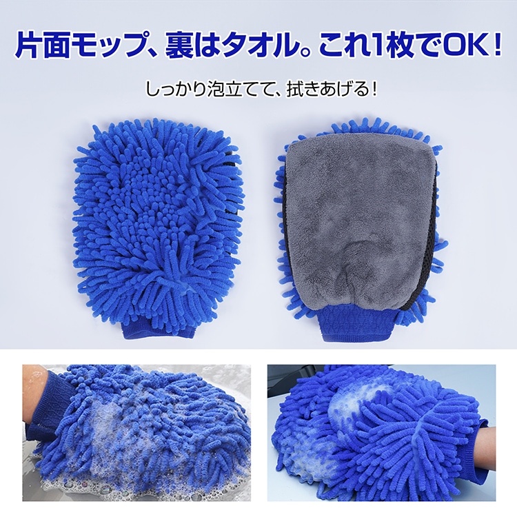洗車グローブ 1枚入り 車体に優しい モップとタオル2面仕様 手が濡れない 外れにくい 洗車用品 カー用品 tkee012