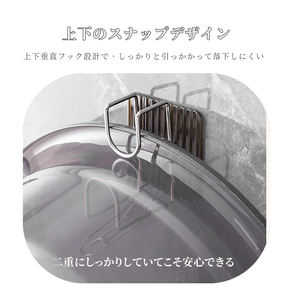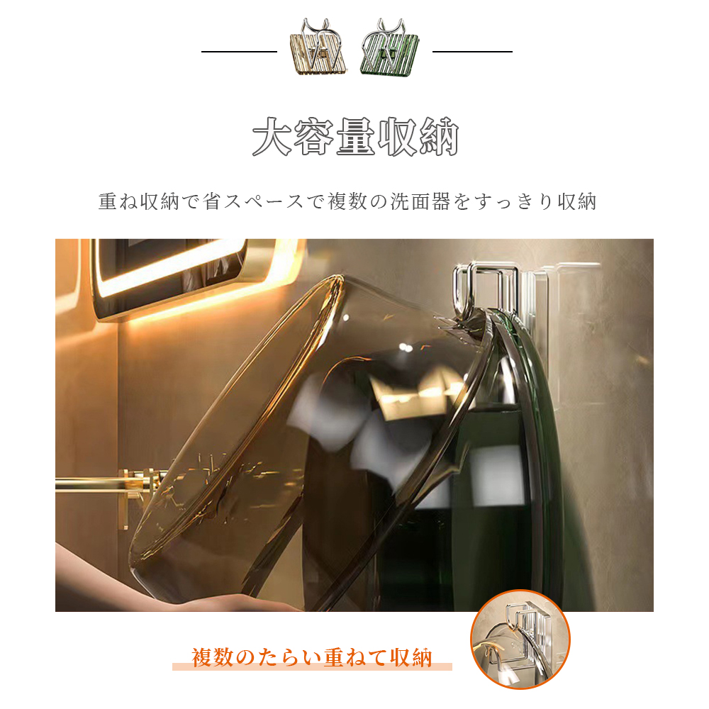 【高い実用性】革新的なデザインなので大きな洗面器をしっかりキャッチし、同時に複数の洗面器をかけることもできます。信頼できる耐荷重と安定性があり、吸盤と違って時間の経過で落ちてくることもありません。
