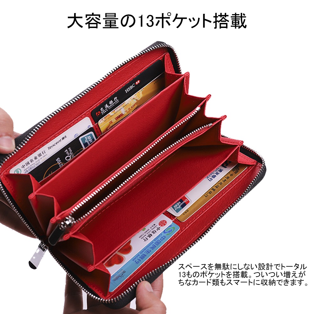 【 大容量の収納スペース / 抜群の取り出しやすさ/豊富なポケット】収納スペースがとても広いのでお札や小銭、カードなどが 見やすい 出しやすい しまいやすい!セパレートタイプの小銭入れは大きで出し入れスムーズ、支払いの時とても便利。小銭入れ・札入れとも底でつながっていないのですきまから出て混ざらない。最上段フリーポケットはマチがあるので収納しやすく、お札・カード・レシート・通帳の保管などマルチに活躍します。カードポケットは収納時にカード頭がほんの少し出るよう取り出しやすいこだわり設計。 カードも整理できてスッキリ。