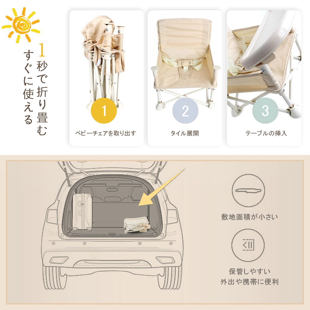 【折りたたみ式大容量収納】折りたたんで収納袋に入れて外出時に持ち運びに便利です。 無料インストール、3ステップの簡単な操作インストール。 折りたたんだ後はスペースが狭く、場所をとりません。片方の肩に収納袋に入れて持ち運べます。 母親は、レストランやカフェ、マザーパーティー、公園でのピクニックなどで外食するためにそれらを連れて行くことができます。 背面には大容量の収納バッグがあり、収納スペースを広げ、おもちゃやベビー用品をまとめて収納できます。