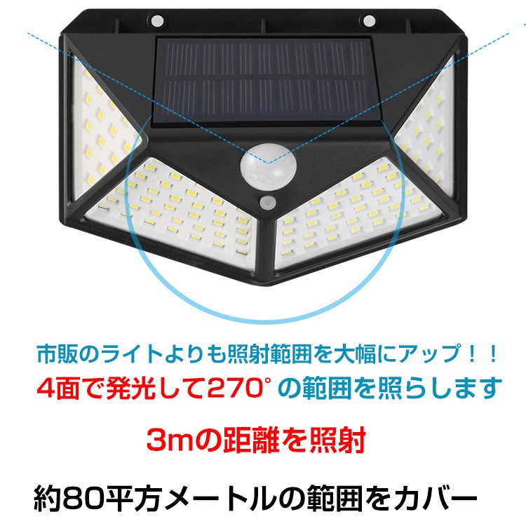 ソーラーライト センサーライト 2個セット 防犯ライト 4面発光 屋外 防水性 配線不要 簡単設置 太陽光充電 電気代ゼロ お家の防犯対策 廊下 庭 駐車場 sl068