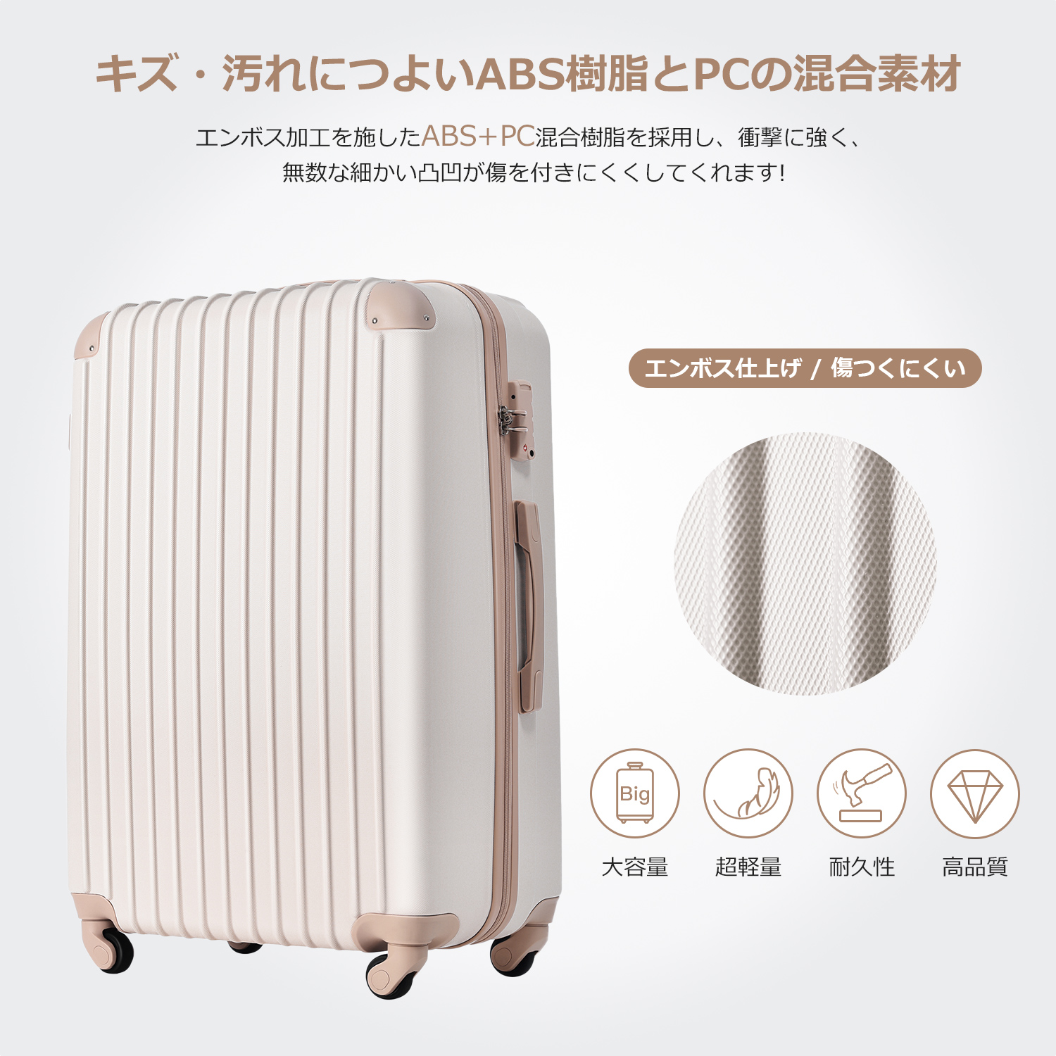 1. 【超軽量】女性でも軽々と持ち上げることができる驚きの軽さ。軽量だから階段もラクラク。女性の方でもらくらく。旅先で重い荷物を持っての移動や、階段の上り下りはシア宮内ですよね。そこで一般的な同サイズの中でも、重量の軽いスーツケースを作りました。軽量スーツケースは海外旅行の、重さ制限にも有利。
