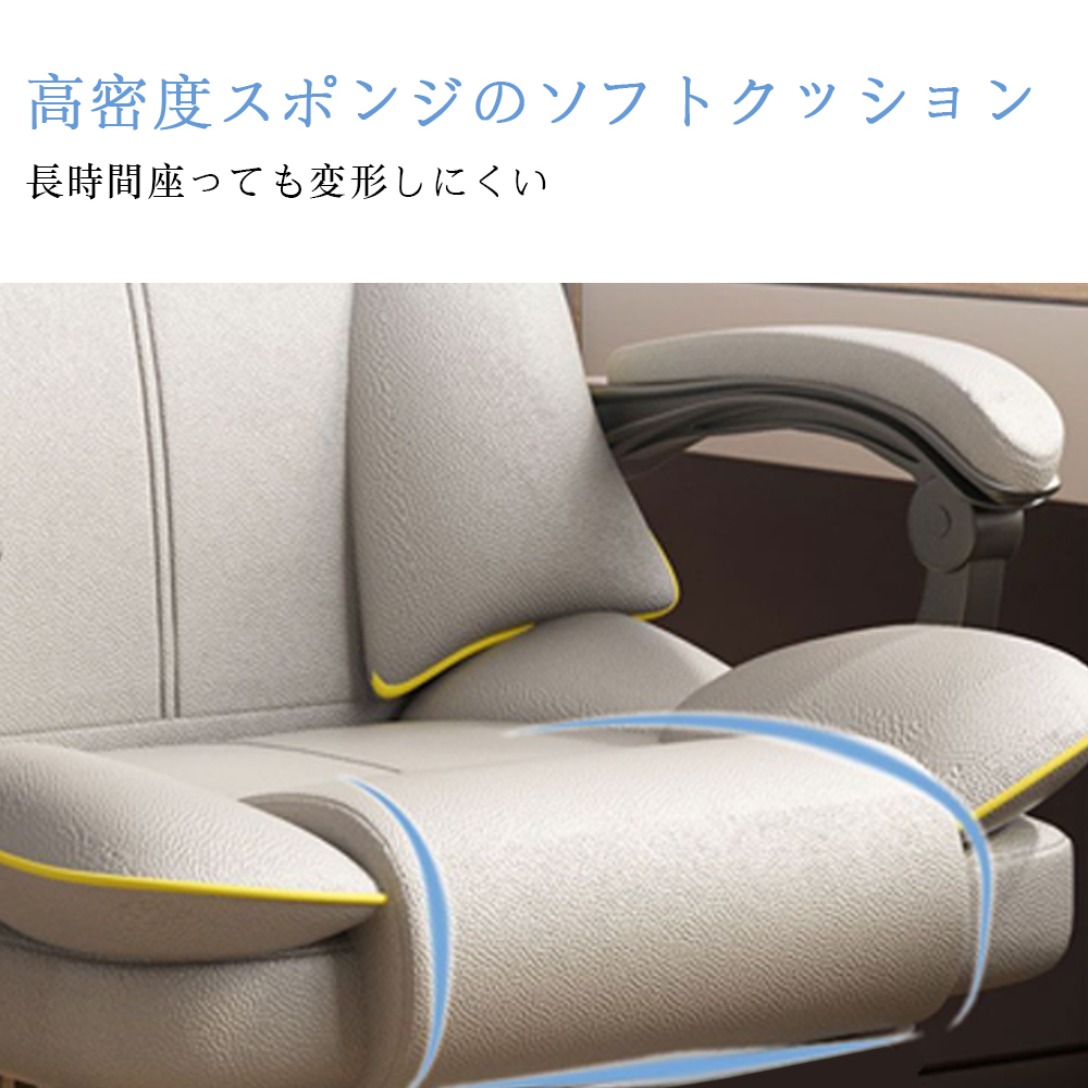 包み込まれるような程よい厚みの背もたれと安定感のある座面が、長時間のデスクワークを快適にサポート。厚のふかふかの座面が、抜群の座り心地を実現します。