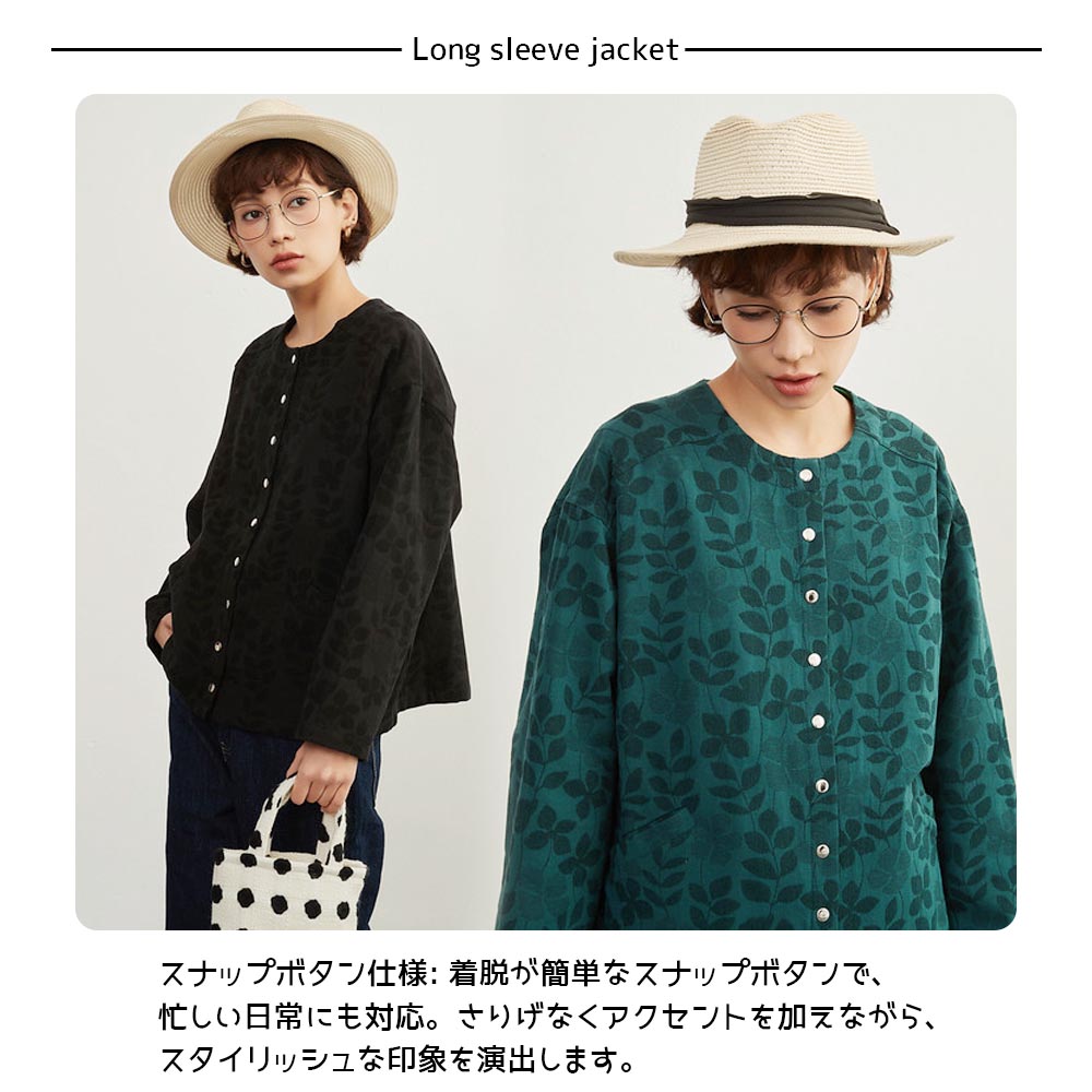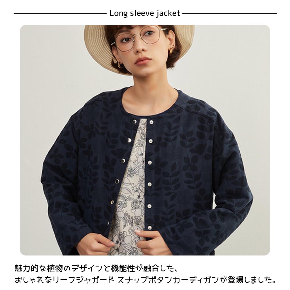 自然の美しさと機能性を兼ね備えたリーフジャガード スナップボタンカーディガンで、おしゃれな毎日を演出しませんか?どんなシーンにもマッチする一着です。