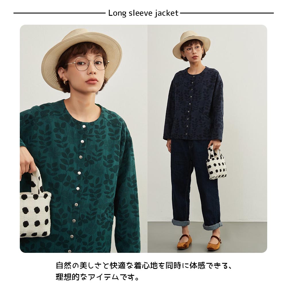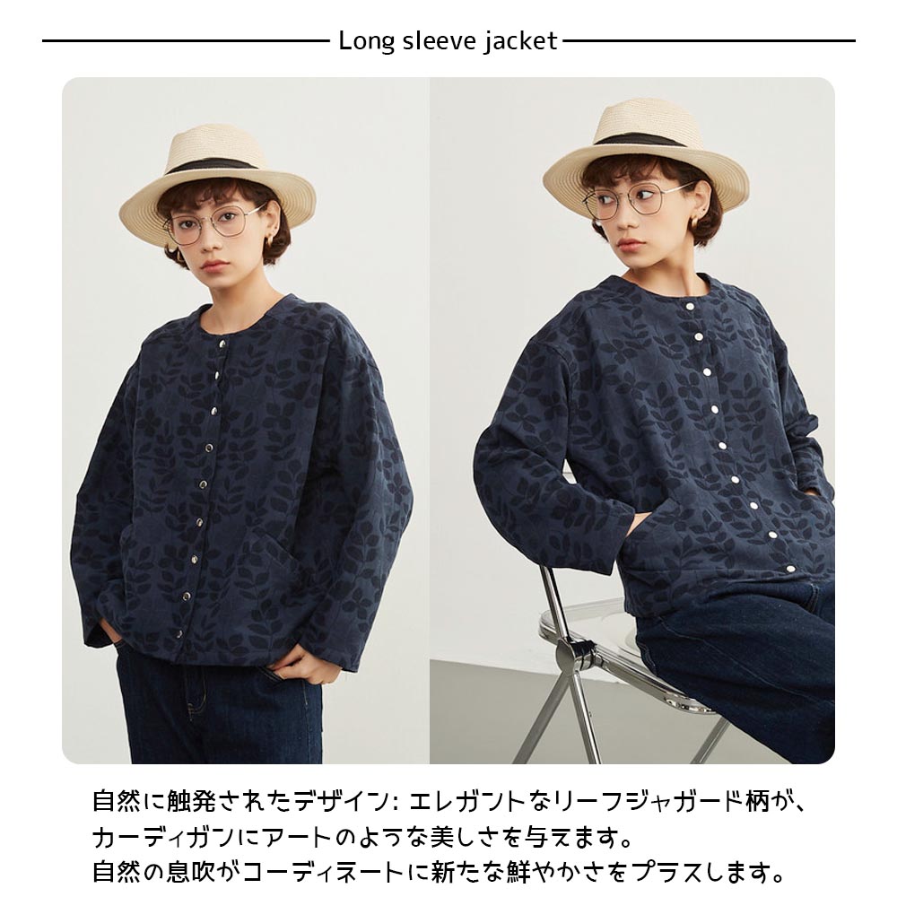 【特徴】 自然に触発されたデザイン: エレガントなリーフジャガード柄が、カーディガンにアートのような美しさを与えます。自然の息吹がコーディネートに新たな鮮やかさをプラスします。