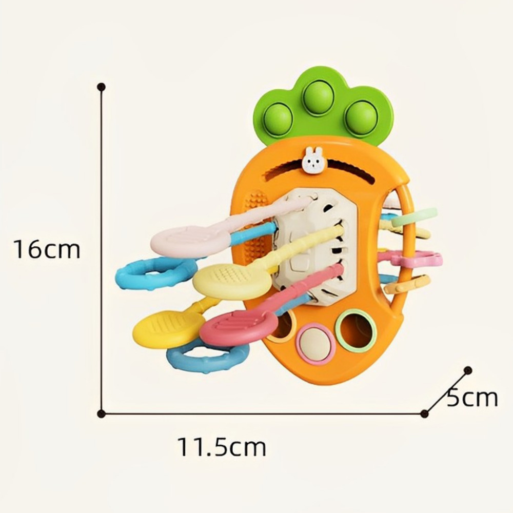 0歳から知育玩具 指先遊び 発育 (ひきぬく 押す 音がなる 掛ける サイズ 厚生労働省指定の検査機関材質済 (にんじんおもちゃ)
