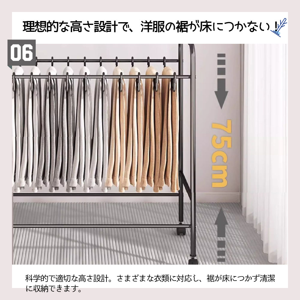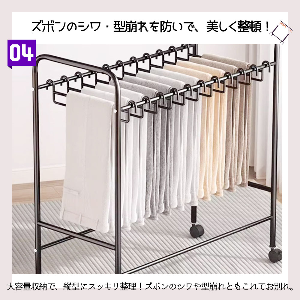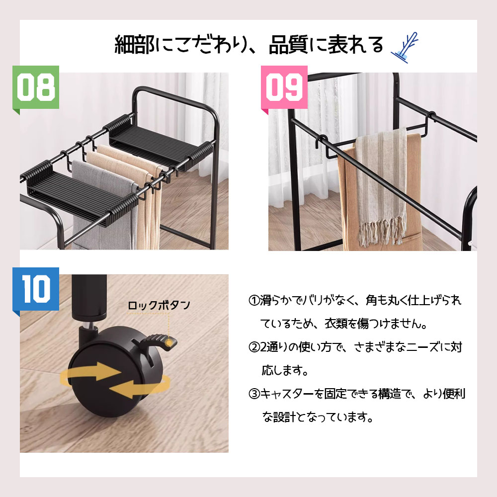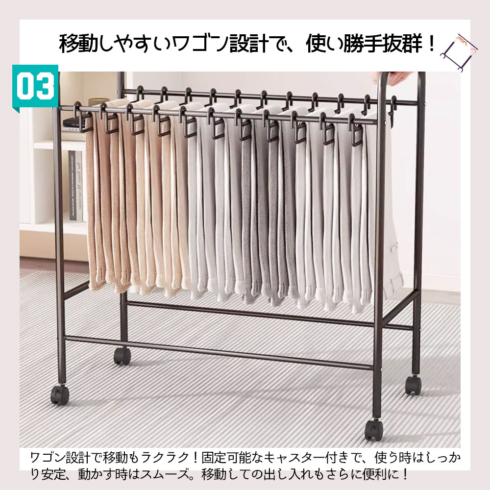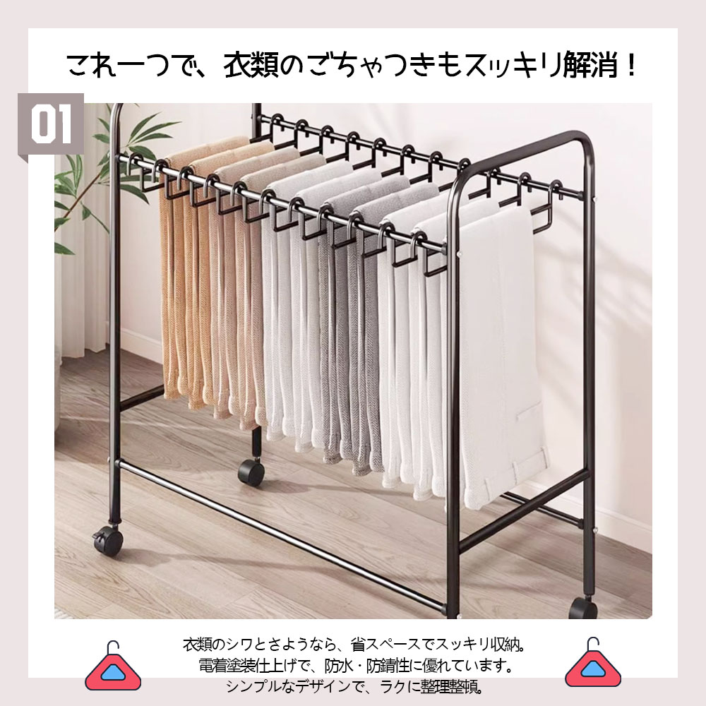 ハンガーラック 衣類収納ラック キャスター付き 移動可能 大容量 省スペース 防水 防錆 シングル ズボン収納 衣類収納 一人暮らし WBGHS-01-C