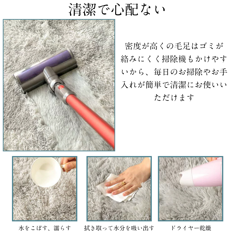 【とてもフワフワで、暖かいです】極細繊維素材、ふわふわで弾力性にも優れています。毛足が長くてふかふかですが、コロコロでも毛が抜けないので掃除しやすくてとてもいいです。掃除機かければゴミも絡まずきれいになります。夏用の冷房対策、冬は床暖房・ホットカーペット対応。